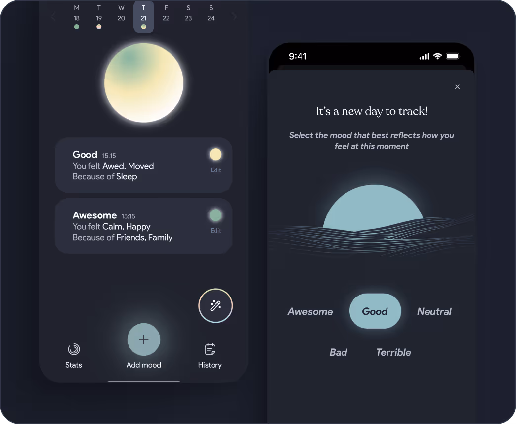 Record your mood, specify your emotions and their triggers, add more details about your current situation and you’ll receive tailored advice to help you manage your daily challenges.